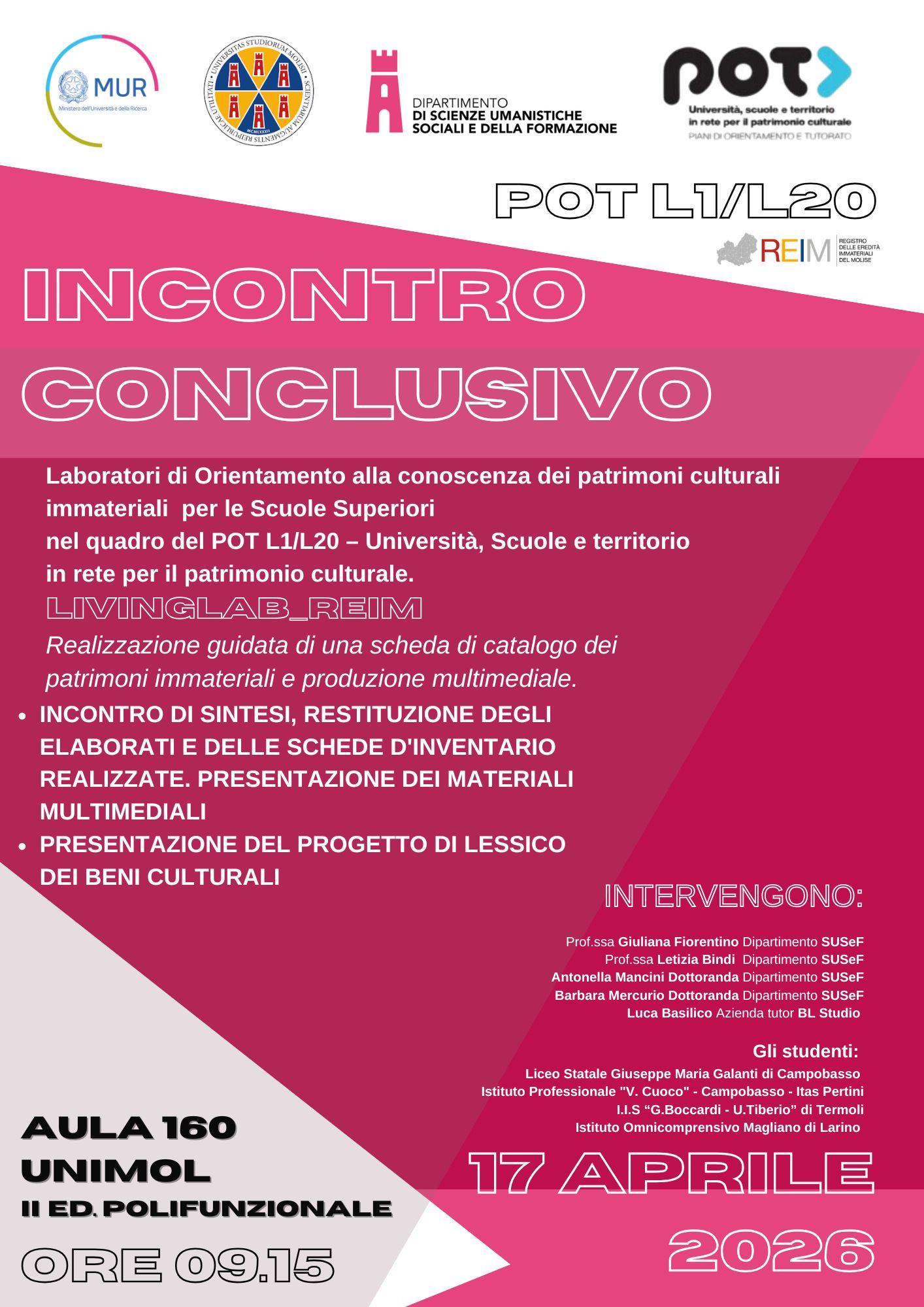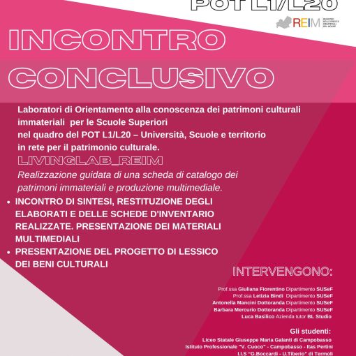 Proprio per questo ultimo aspetto, nell’atrio della Biblioteca dell’Università del Molise sono stati esposti i pannelli descrittivi del Reim, frutto di un lavoro di ricerca scientifica sui Patrimoni regionali presenti nei vari comuni molisani, condotto dal Dipartimento Susef all’interno di un progetto di cooperazione europea con la Regione Molise.