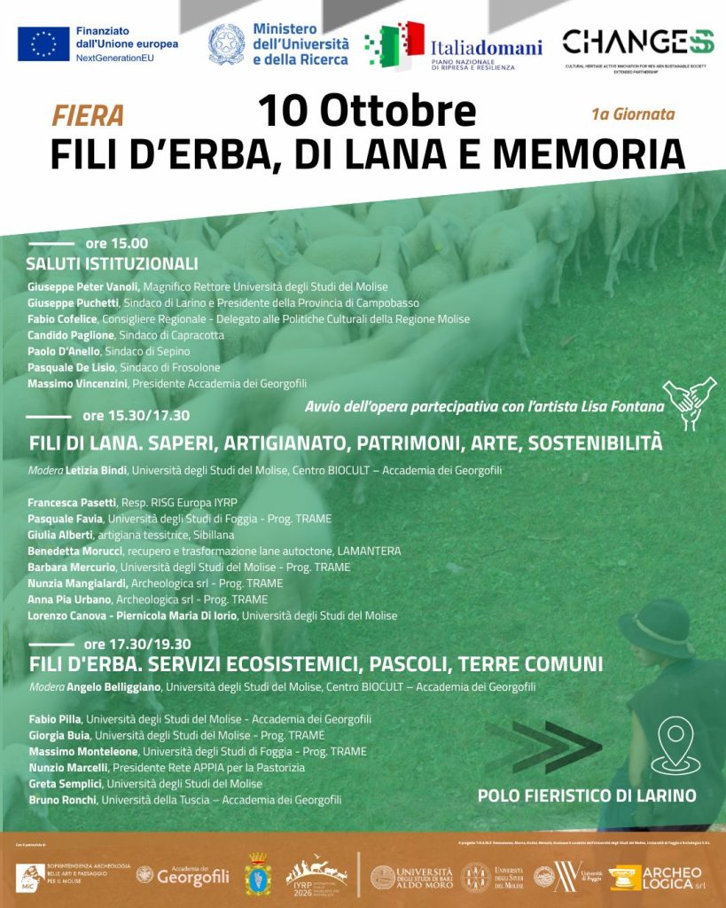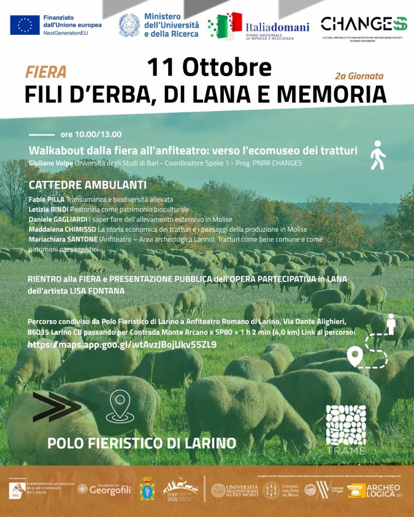 Il 10 ottobre 2025 nel quadro della 282° edizione della Fiera di Larino, il progetto T.R.A.M.E. propone due momenti espositivi che prendono il nome di Fili d’erba, di lana e memoria.
