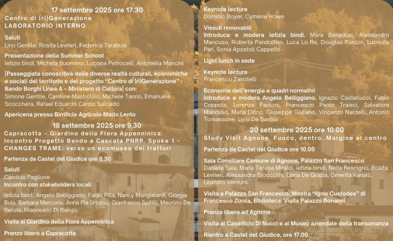 Il 18 settembre a Capracotta si terrà un nuovo incontro del progetto PNRR ‘TRAME’ nel quadro dello SPOKE 1 ‘CHANGES’ volto alla mappatura partecipativa con le comunità molisane e pugliesi […]